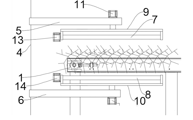 - Transfer and feeding: The rotating column rotates to transfer the clamped ramie between the first and second ramie stripping devices; the vertical adjustment device adjusts the vertical position of the clamping gap, allowing the ramie to enter the feeding gap at an appropriate angle.