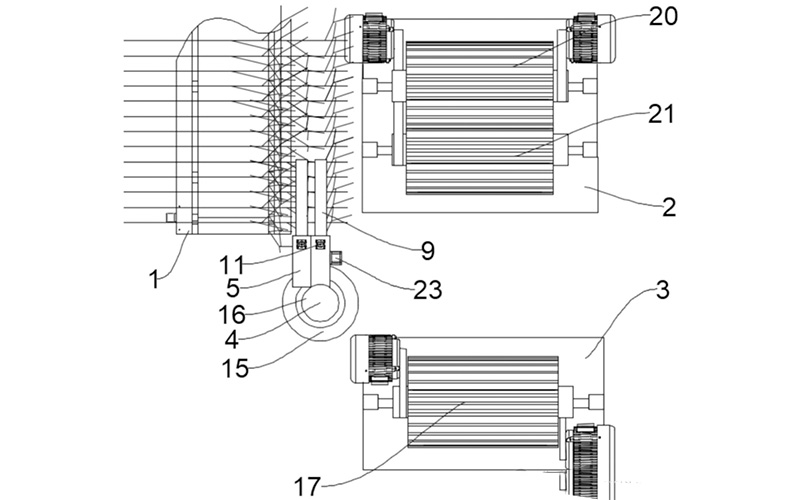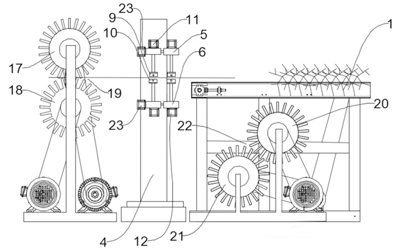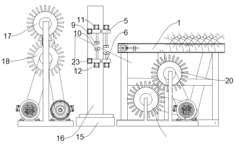 - Existing fully automatic reverse-pull ramie stripping machines have three major problems: unstable feeding relying on gravity, where differences in ramie rod sizes easily affect stripping results; twig and leaf entanglement at the tip with equipment axles or driving parts, leading to failures; and the need for horizontal moving mechanisms, resulting in large horizontal floor space and hindering intensive layout.